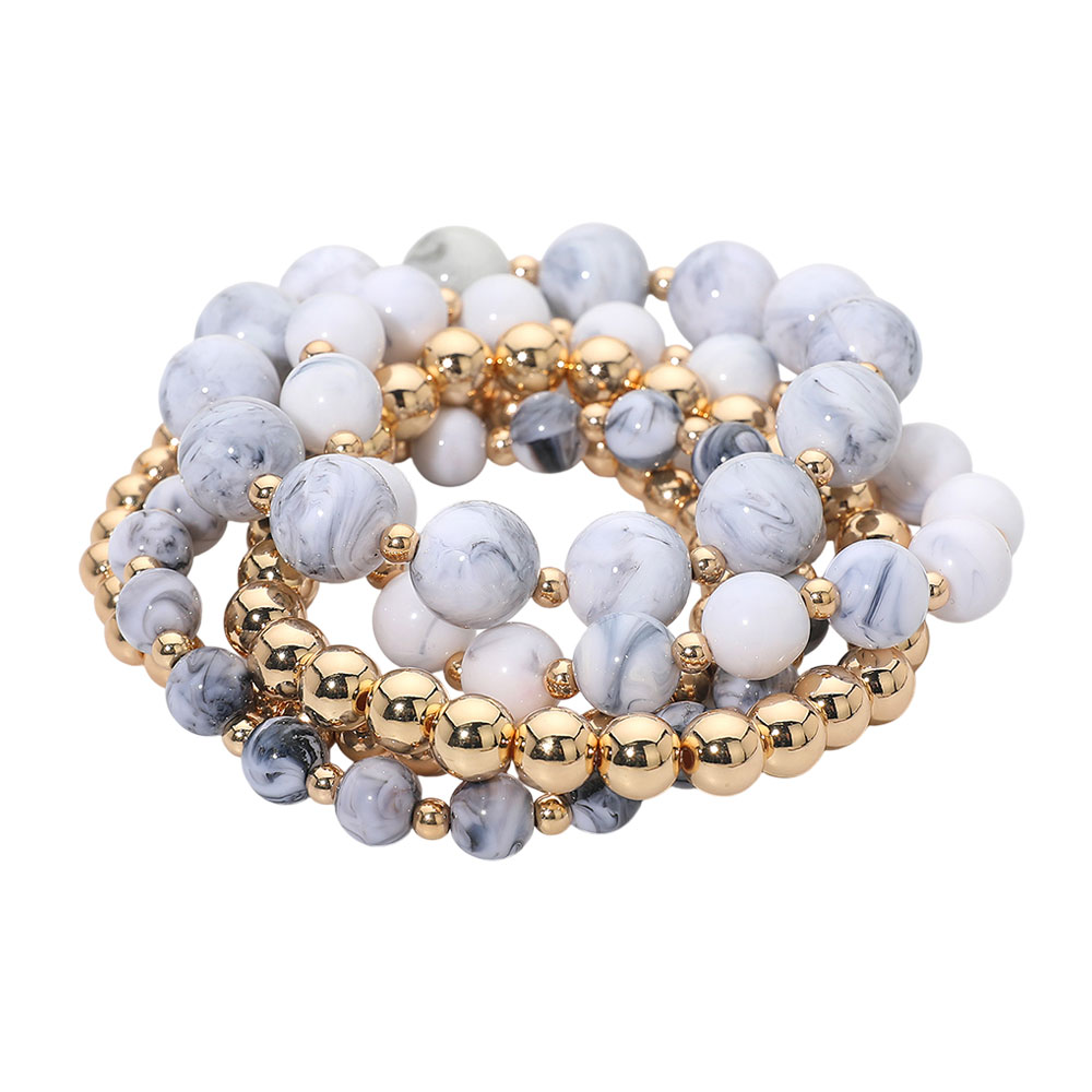 5PCS - Resin Metal Ball Beaded Stretch Multi Layered Bracelets