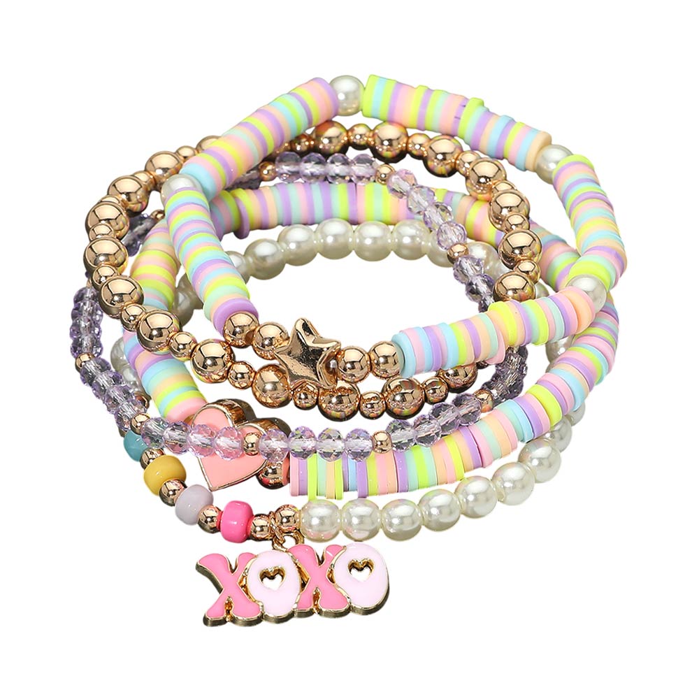 Details • Size : 2" H • Stretchable • Fun and expressive stretch bracelet set featuring mixed bead styles and a playful XOXO charm accent. Designed for easy stacking and comfortable wear, this multi-piece set adds personality to casual looks, gifting moments, themed collections, and everyday accessory displays while appealing to trend-focused shoppers. • Lead and Nickel Compliant