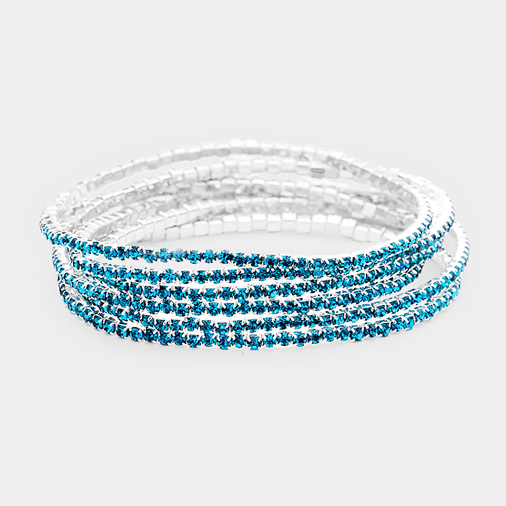 6PCS - Rhinestone Multi Layered Stretch Evening Bracelets