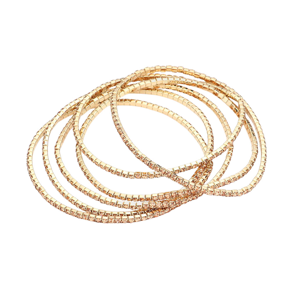 6PCS - Rhinestone Multi Layered Stretch Evening Bracelets