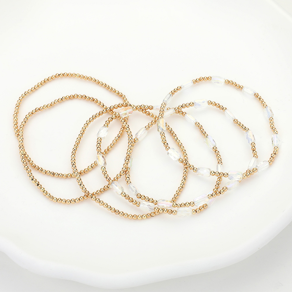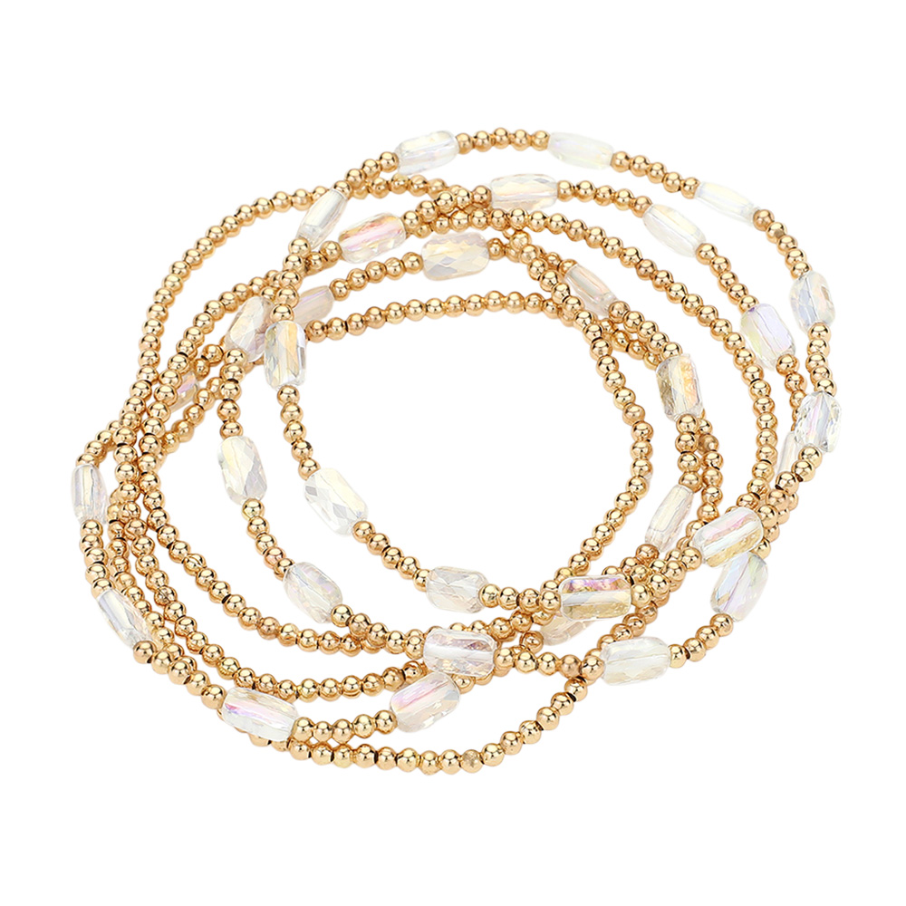 6PCS - Skinny Metal Ball Rectangle Faceted Beaded Stretch Multi Layered Bracelets
