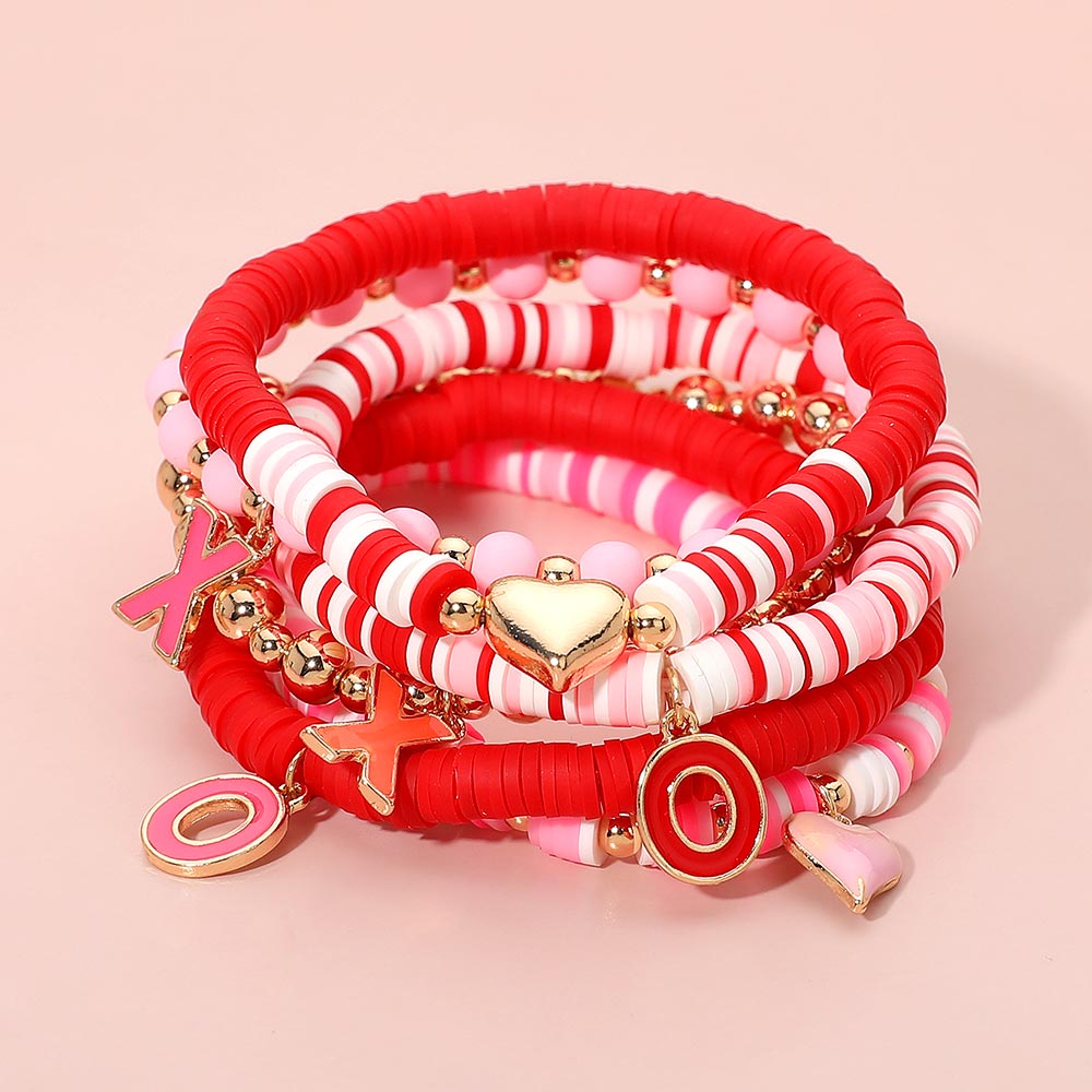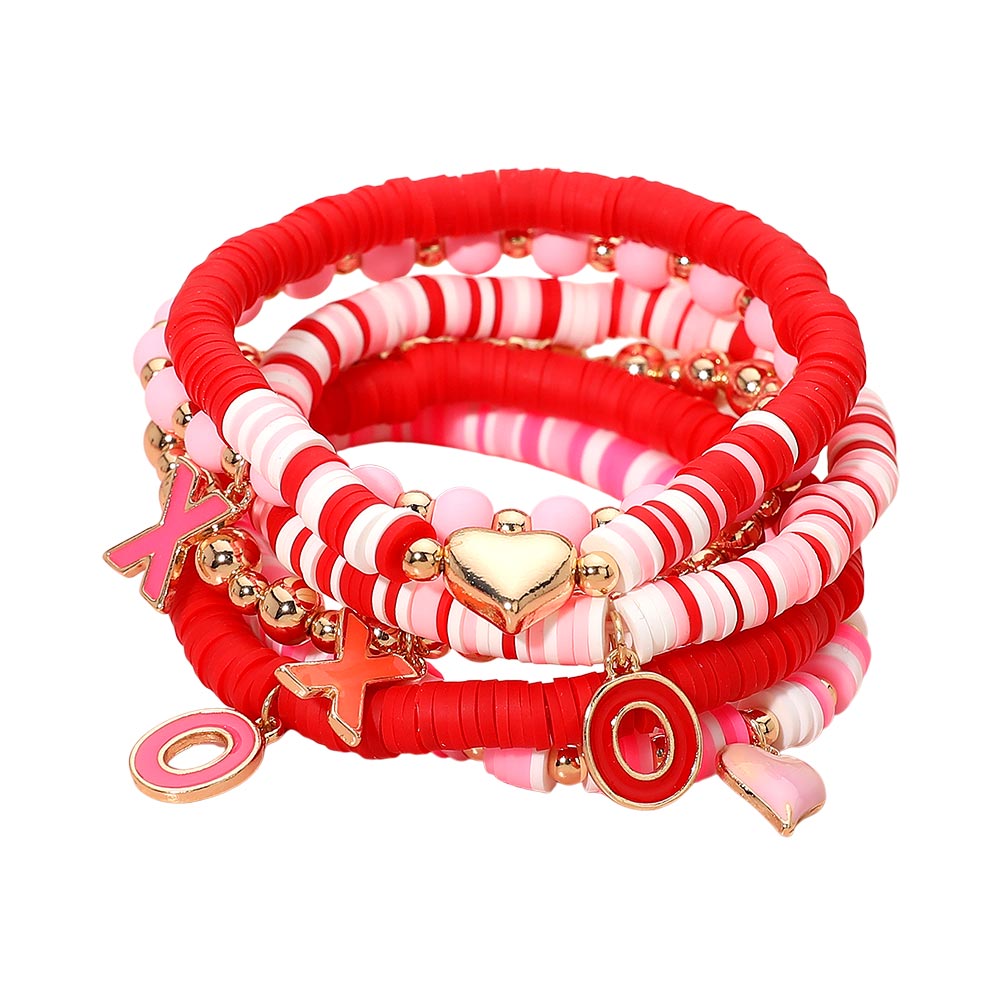 Details • Size : 1.4" H • Stretchable • Cute beaded stretch bracelet set featuring mixed strands with heart and letter charms, playful accents, and layered designs. A fun accessory pack perfect for gifting or stacking, adding a sweet themed touch to everyday outfits or special occasions. • Lead and Nickel Compliant
