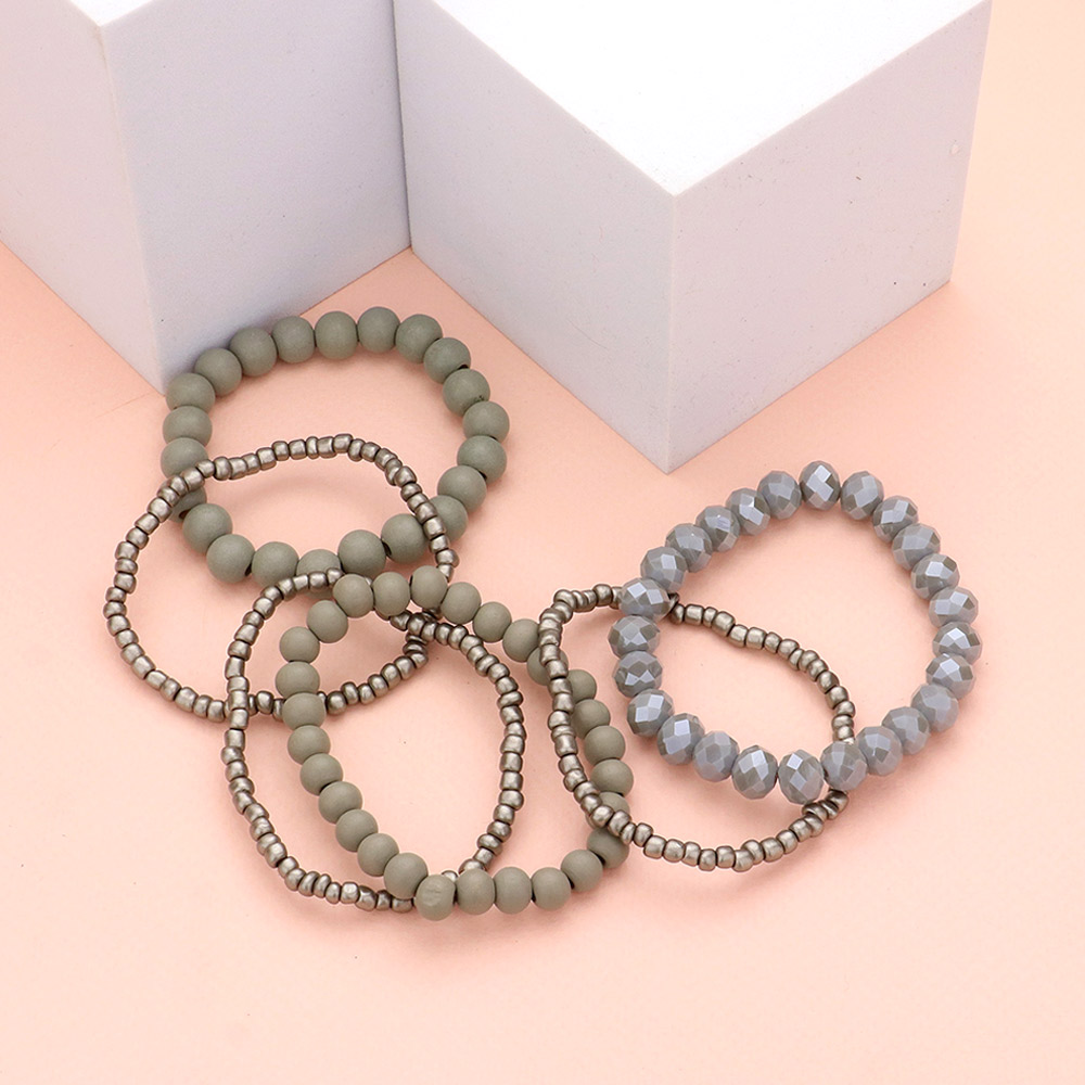 Details • Size : 1.6" H • Stretchable • Complete your look with this multi-strand beaded bracelet set, featuring smooth round beads, faceted crystal accents, and delicate seed bead strands. Perfect for layering, this stretch design offers versatile style that transitions effortlessly from casual wear to elegant outfits with modern charm. • Lead and Nickel Compliant