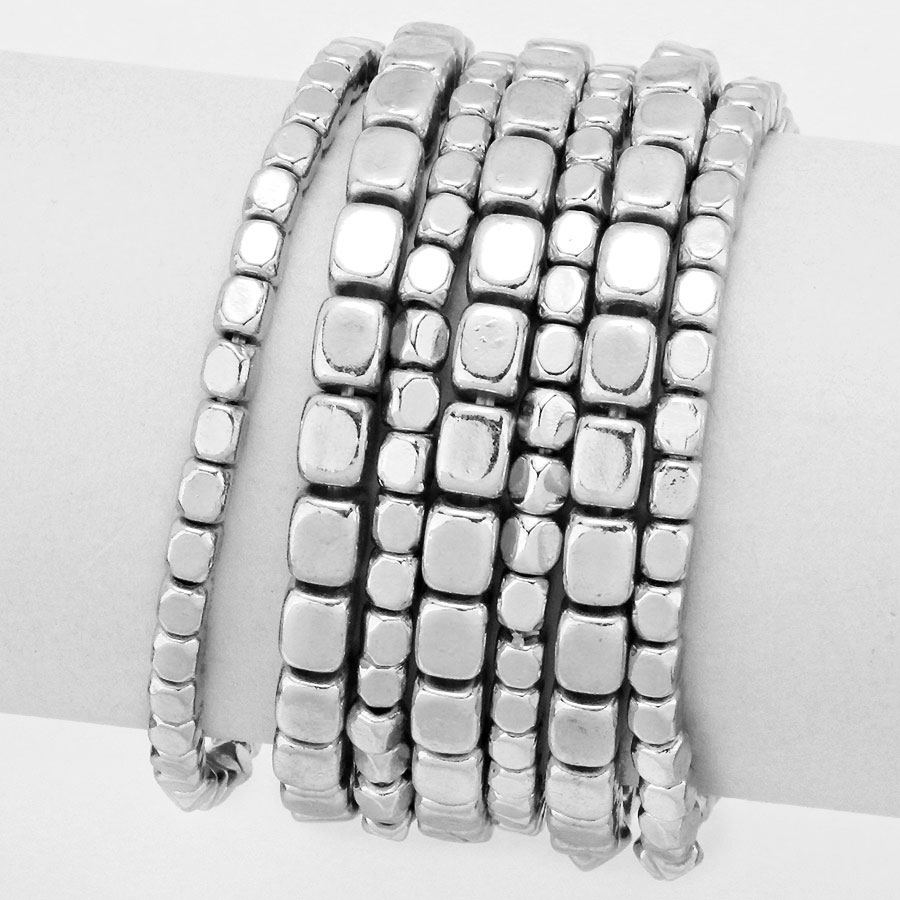7 PCS - Metal Bead Stack Stretch Multi Layered Bracelets