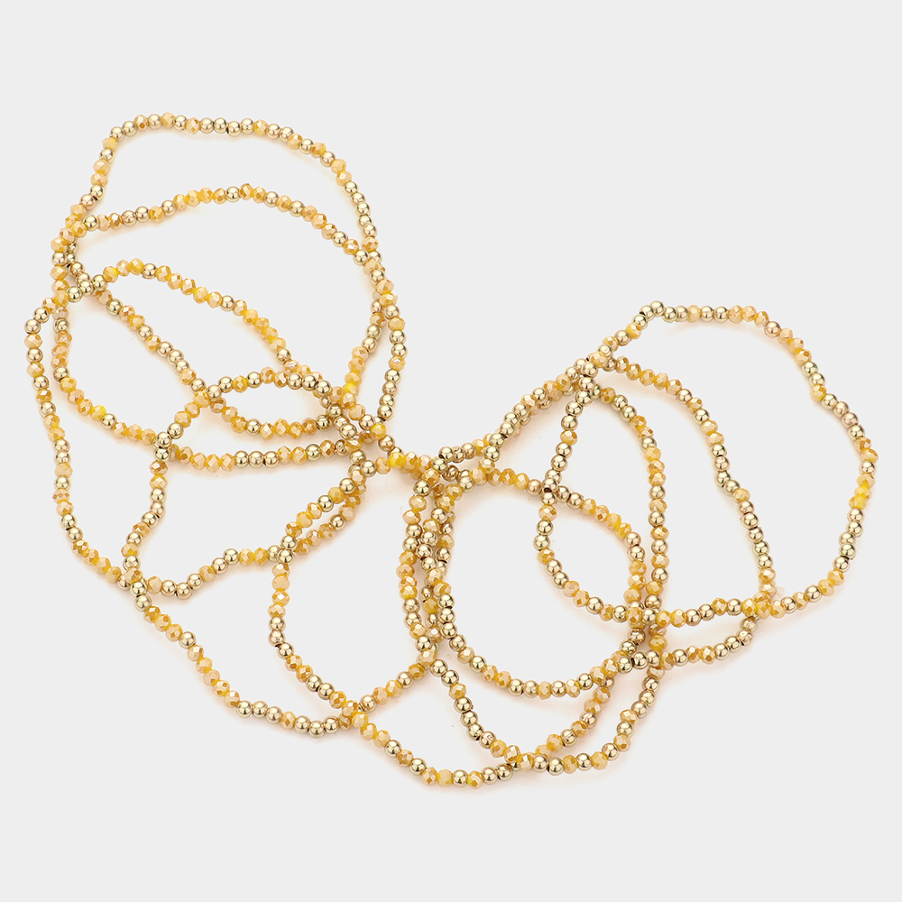 8PCS - Metal Ball Faceted Beaded Stretch Bracelets