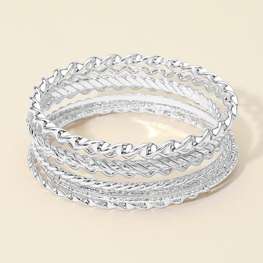 8PCS - Textured Metal Stackable Multi Layered Bangle Bracelets