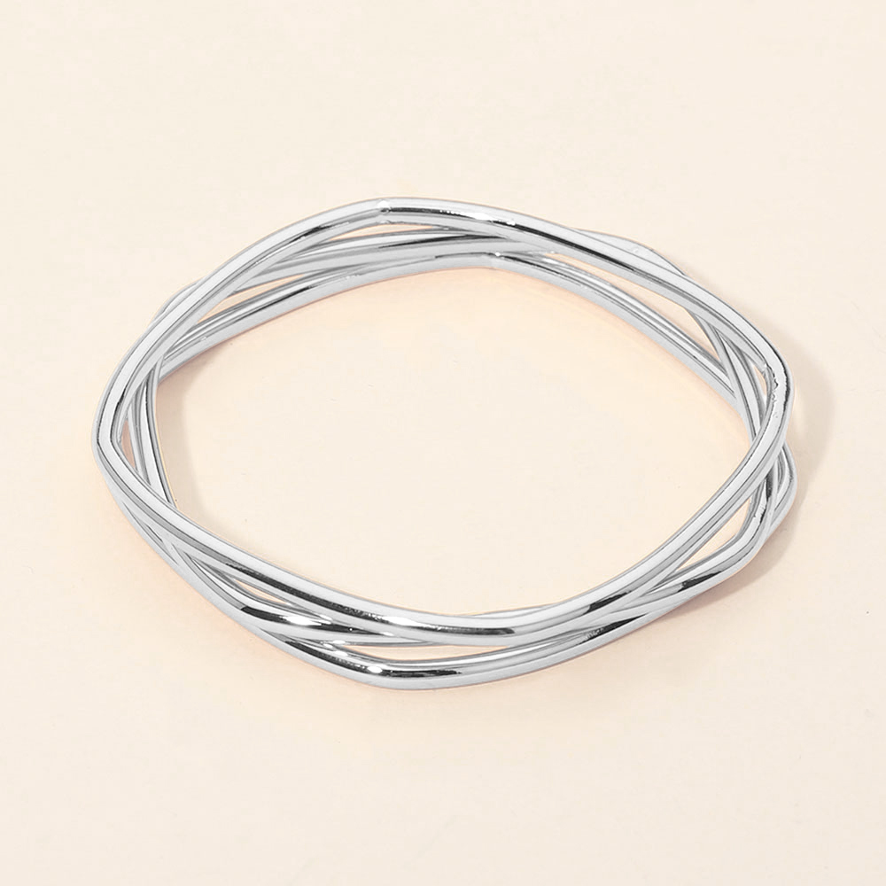 Details • Size : 0.4" H, 2.4" D • Water Resistant • Modern square shape stackable bangle set featuring three sleek geometric bangles designed for effortless layering or standalone wear. The clean structured silhouette adds a contemporary edge to everyday outfits, office looks, and evening styling, making this set a versatile jewelry essential. • Hypoallergenic • Stainless Steel