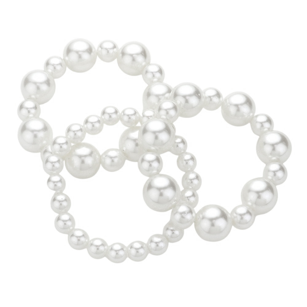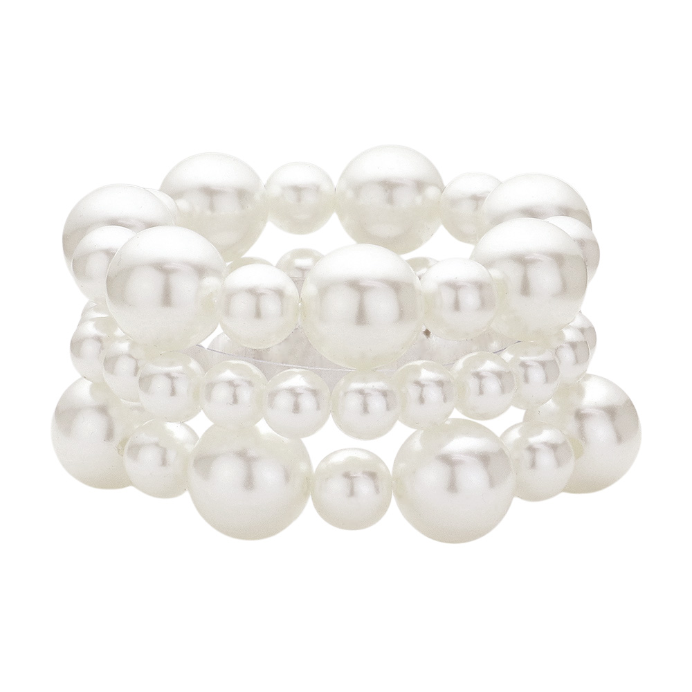 Details • Size : 1.75" H • Stretchable • Elegant triple row stretch bracelet featuring round pearl-like beads in alternating sizes. A timeless piece that adds sophistication to casual wear, weddings, parties, and formal occasions. • Lead and Nickel Compliant