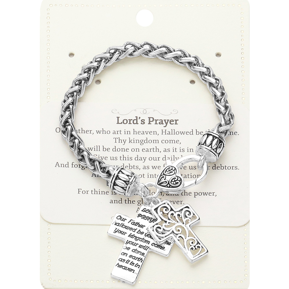 Lord's Prayer Message Antique Cross Charm Bracelet