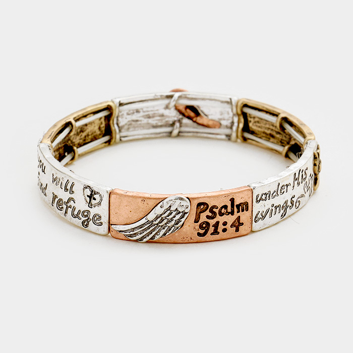 Psalm 91 : 4 Hammered Metal Stretch Bracelet