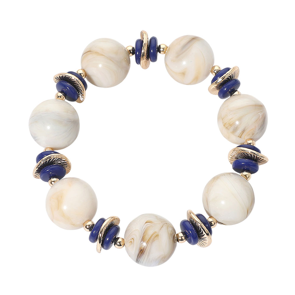 Abstract Marbled Resin Ball Beaded Stretch Bracelet