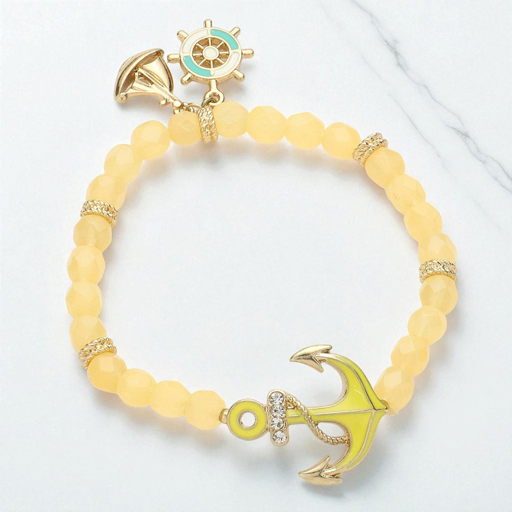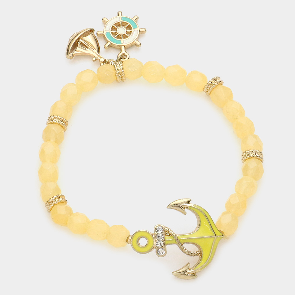 Gold Dipped Enamel Anchor Pink Ribbon Pendant Necklace