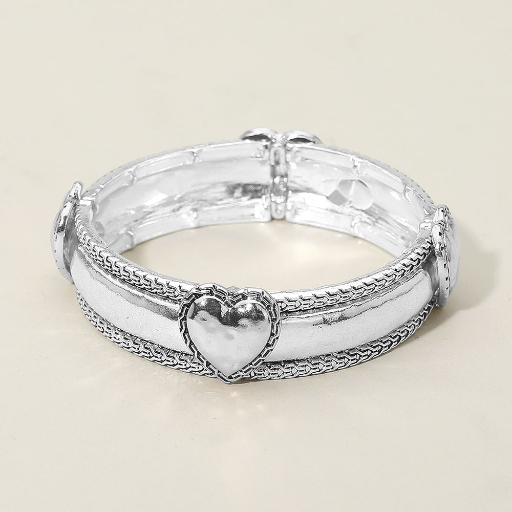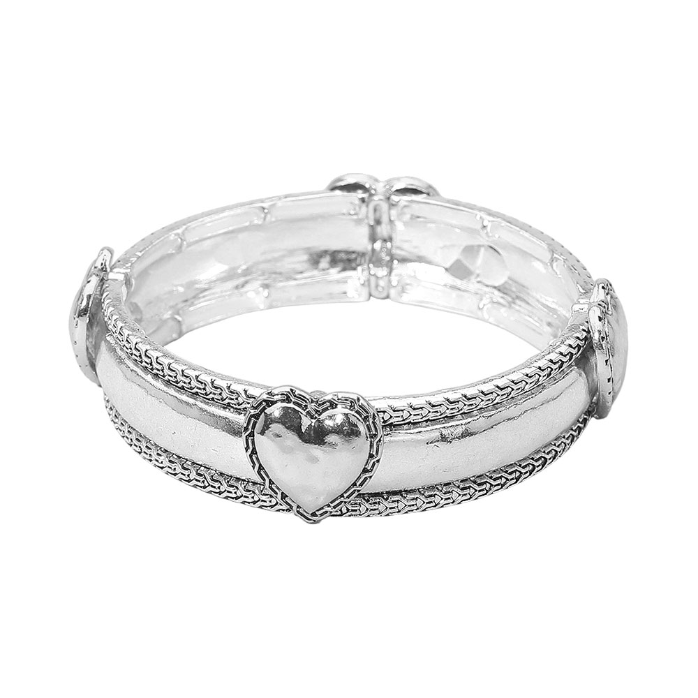 Antique Metal Heart Accent Stretch Bracelet