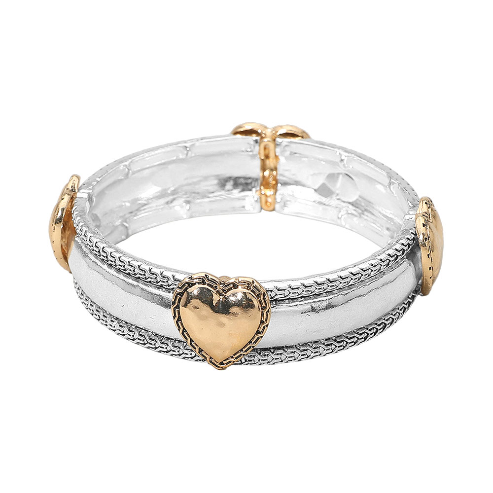 Antique Metal Heart Accent Stretch Bracelet