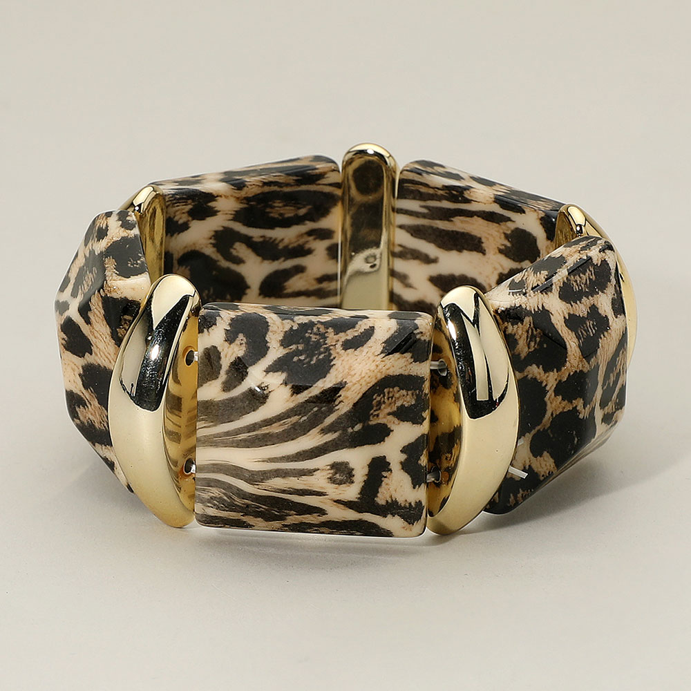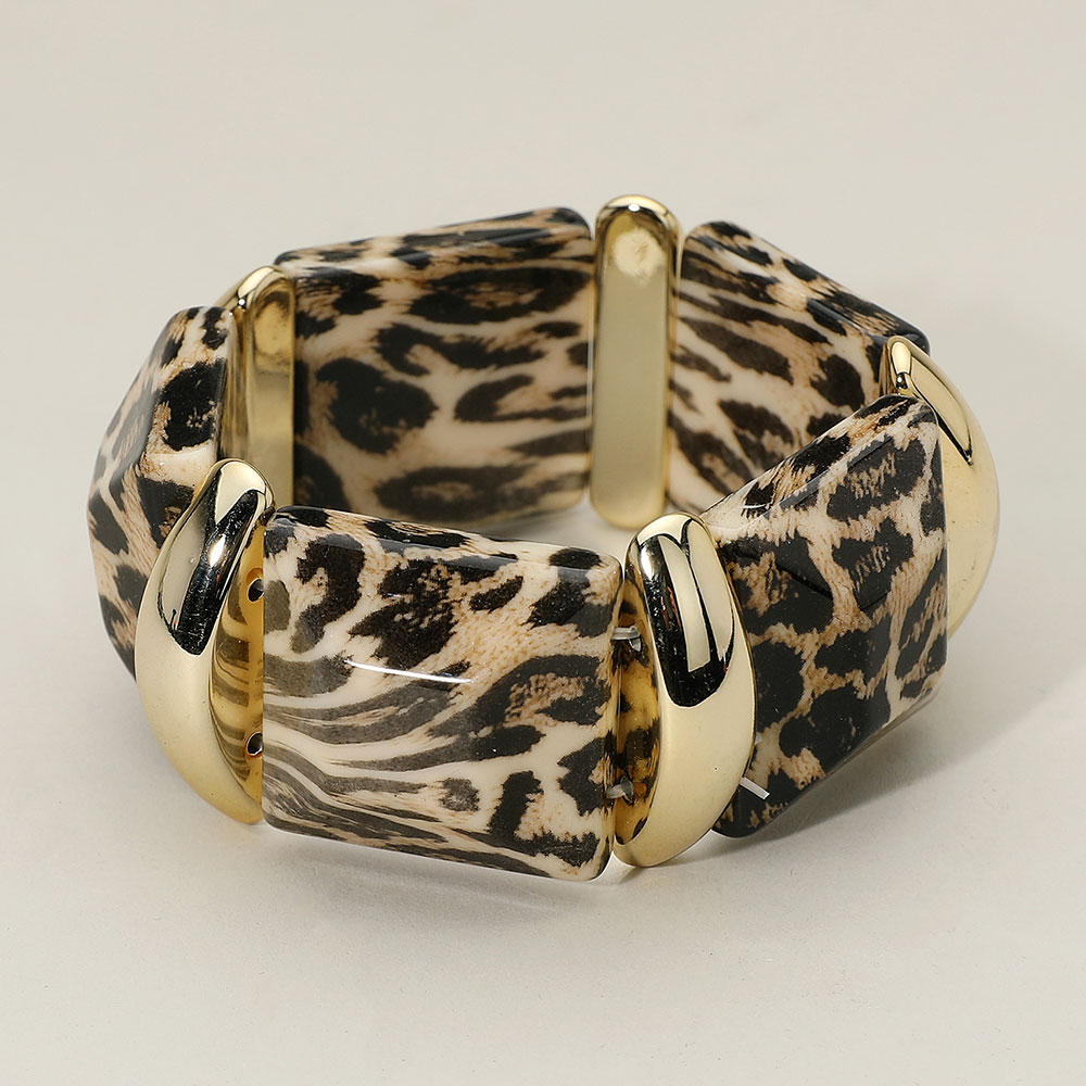 Details • Size : 1.5" H, 2.4" D • Stretchable • Command attention with this leopard link stretch bracelet featuring bold patterned panels and sleek connector accents for a high-impact look. Designed for easy comfort and everyday wear, it’s a versatile accessory for elevating casual outfits or completing confident, fashion-forward ensembles with standout style. • Lead and Nickel Compliant
