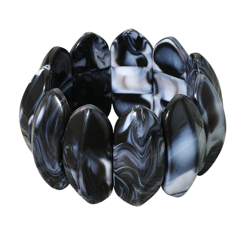 • Elevate your look with this marbled stretch bracelet featuring pointed oval panels for a chic and contemporary vibe. Its bold design and flexible fit make it perfect for stacking or wearing solo as a statement piece, adding versatile style to both casual and dressy outfits.