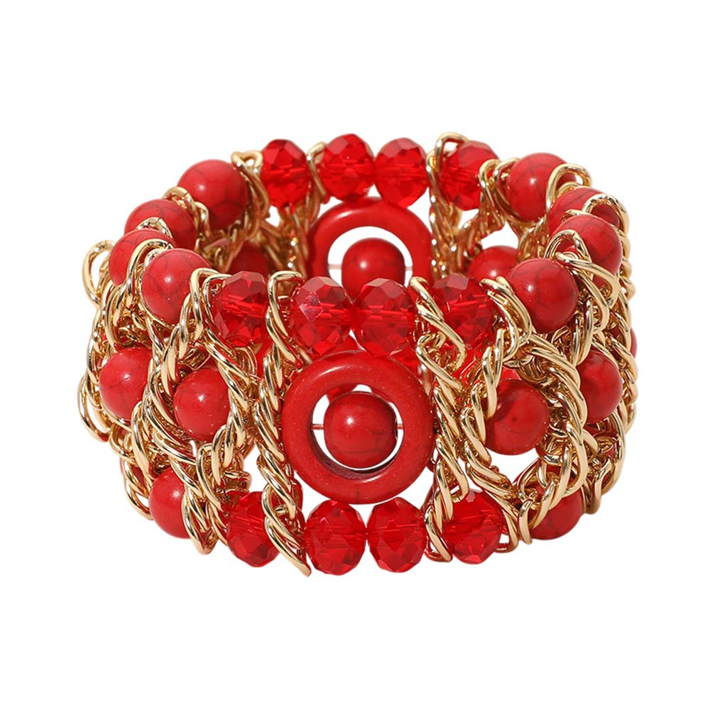 • Bold stretch bracelet designed with layered beads, faceted accents, and interlinked chain details for a dimensional statement look. Comfortable elastic fit allows easy wear while adding texture and shine to everyday or evening styling. Ideal for boutique collections, gifting, event styling, and trend-focused accessory assortments seeking eye-catching yet wearable designs.