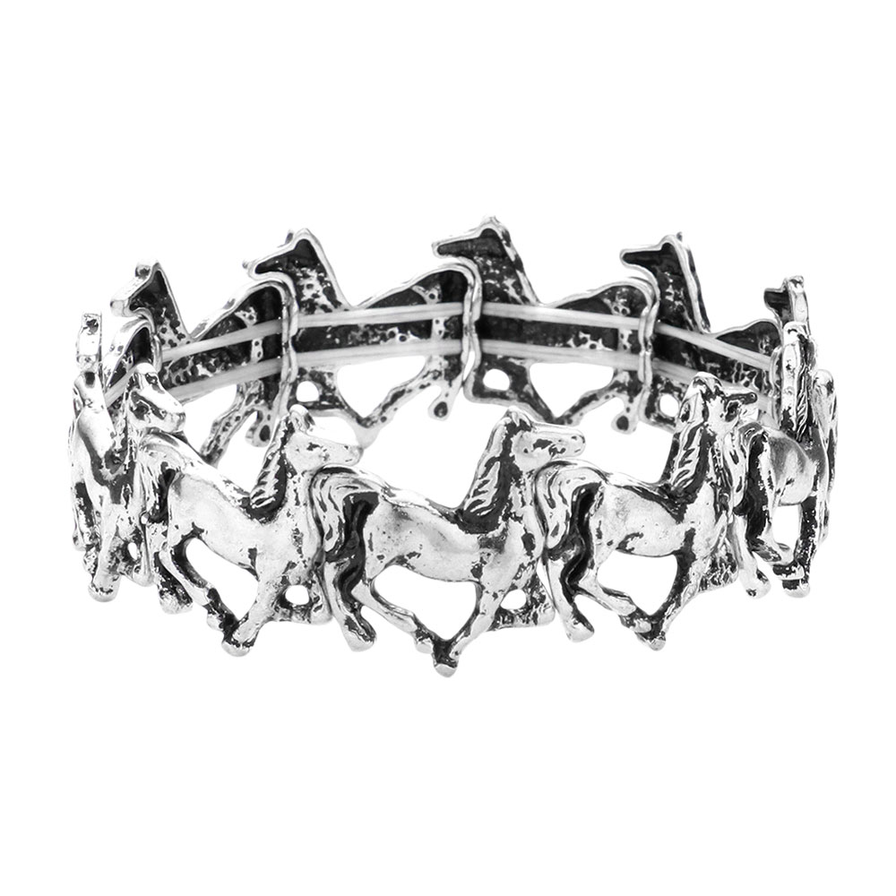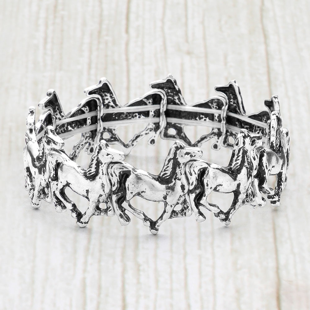 Burnished Metal Horse Link Stretch Bracelet Burnished Metal Horse Link Stretch Bracelet