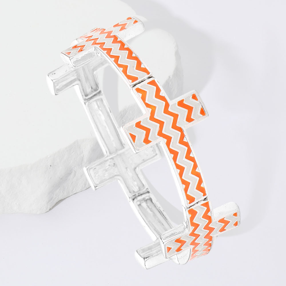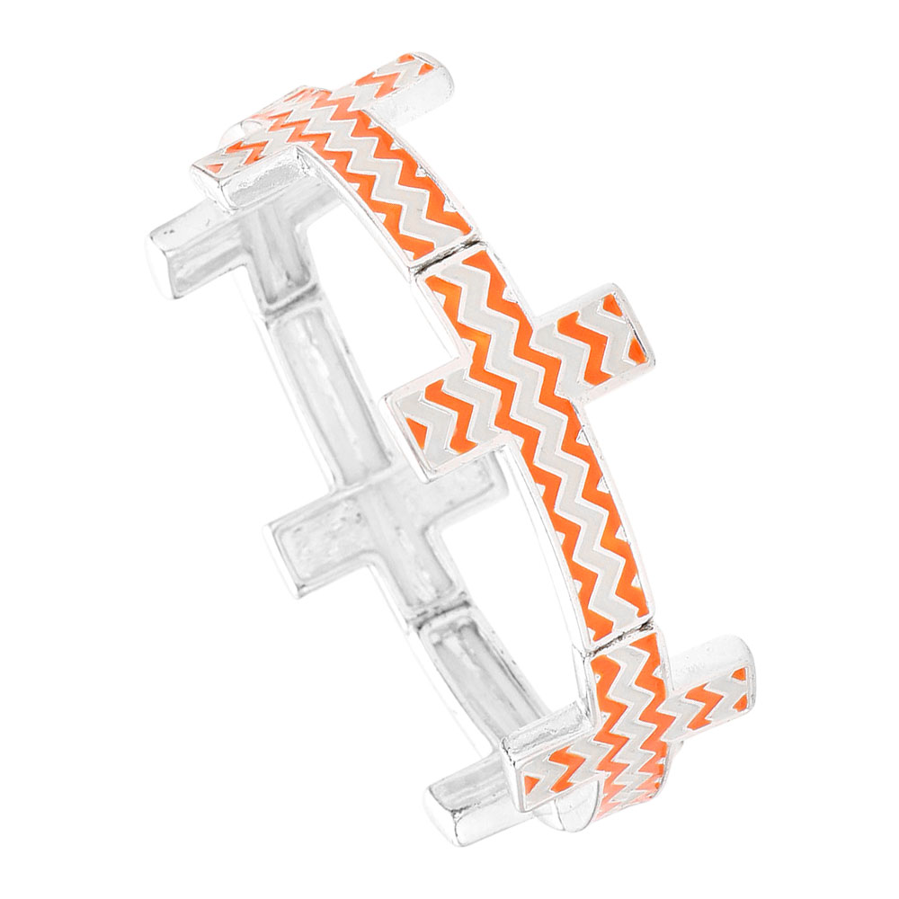 • This stretch bracelet features bold cross accents detailed with a modern chevron pattern, creating a striking blend of faith-inspired style and contemporary fashion. Easy to wear and versatile, it makes a statement piece that pairs beautifully with both casual looks and dressy outfits.