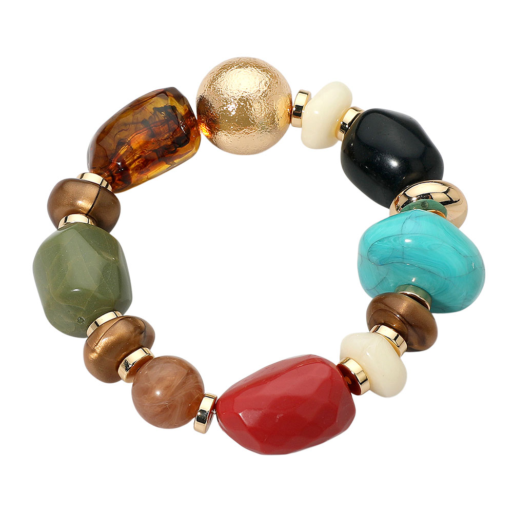 • This statement bracelet combines a mix of smooth and textured beads with subtle metallic touches, creating a chic, earthy appeal. Its elastic stretch design ensures comfort and versatility, making it the perfect accent for both casual looks and elegant ensembles.