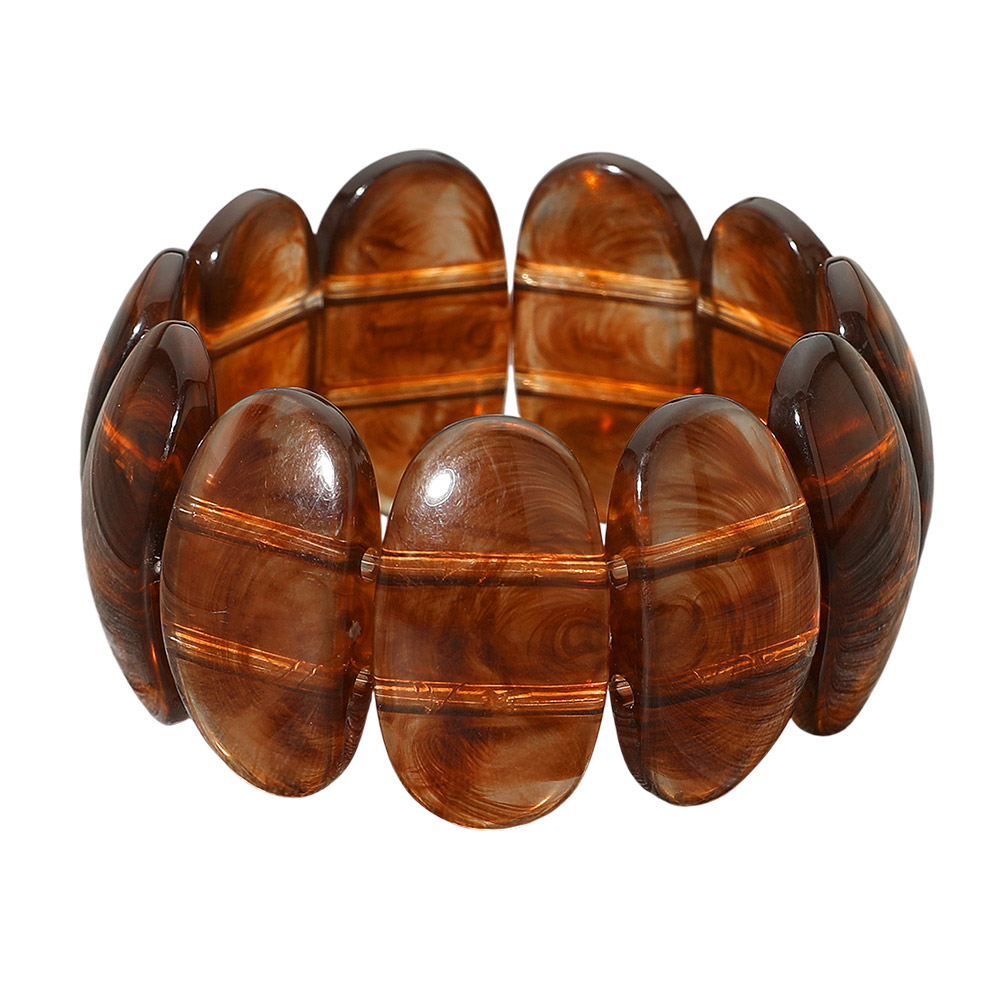 Chunky Oval Resin Panel Beaded Stretch Bracelet Chunky Oval Resin Panel Beaded Stretch Bracelet
