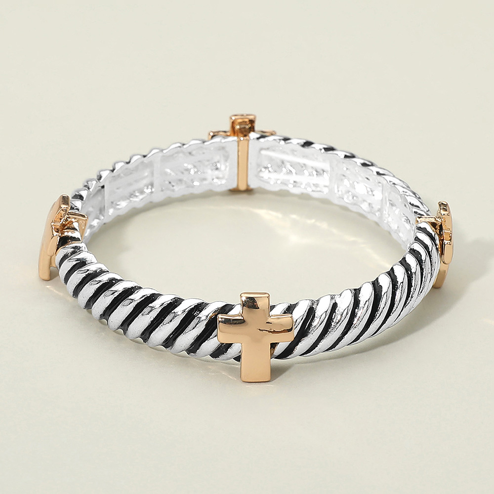 • This textured stretch bracelet features a raised cross accent paired with a sculpted band for a meaningful and stylish look. Designed for comfort and everyday wear, it’s ideal for boutiques offering faith-inspired accessories, giftable jewelry, and versatile pieces that blend symbolism with modern fashion appeal.
