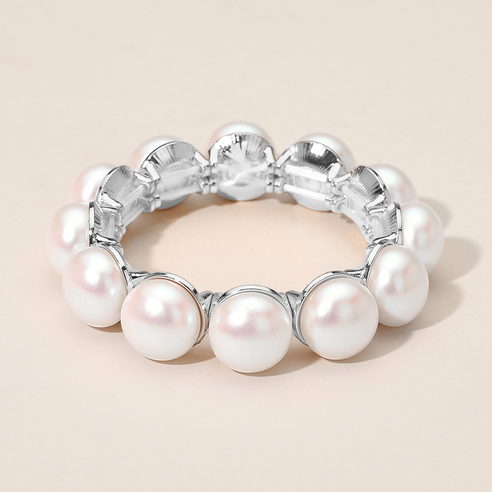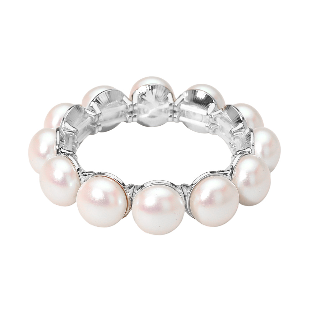 Details • Size : 0.7" H • Stretchable • Add timeless elegance to your accessories with this pearl statement bracelet featuring a classic beaded stretch design. Perfect for weddings, parties, or everyday sophistication, this bracelet enhances any outfit with refined charm and effortless style. • Lead and Nickel Compliant