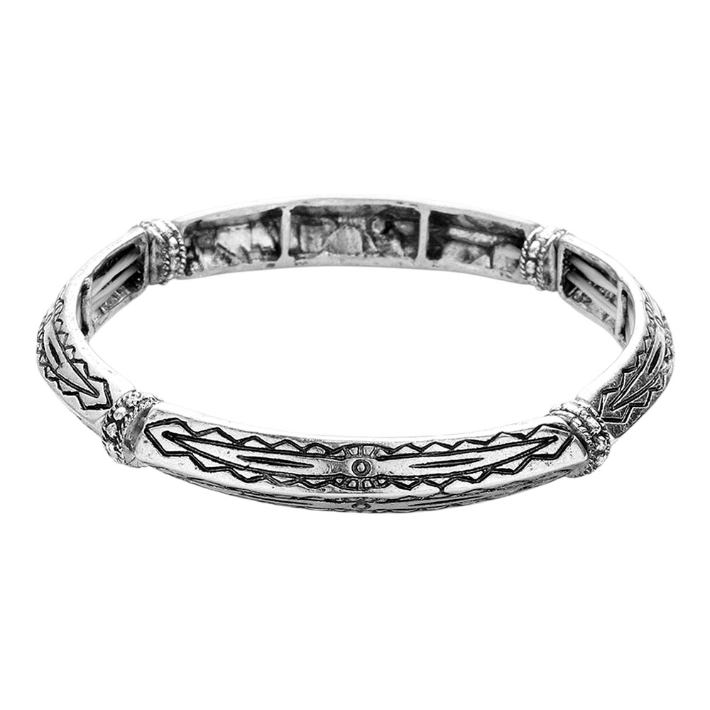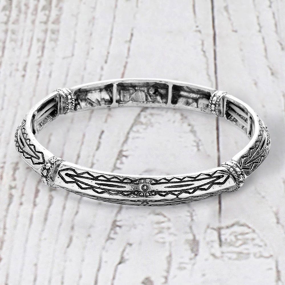 Details • Size : 0.3" H • Stretchable • Elegant stretch bracelet featuring a slim band with engraved detailing, offering a subtle touch of artistic style. Ideal for wearing alone for a refined look or layering with other pieces to create a personalized bracelet stack with character. • Lead and Nickel Compliant