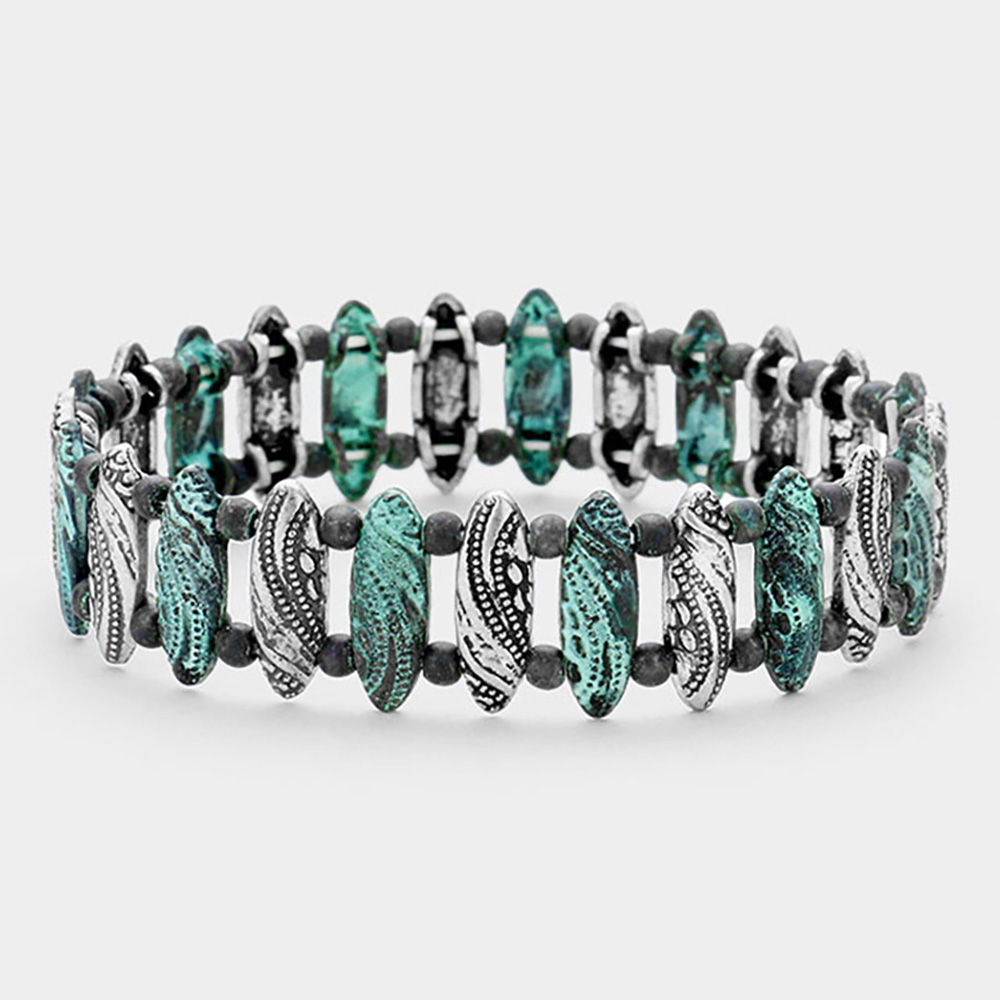Beaded Flower Teardrop Stone Link Dangle Earrings