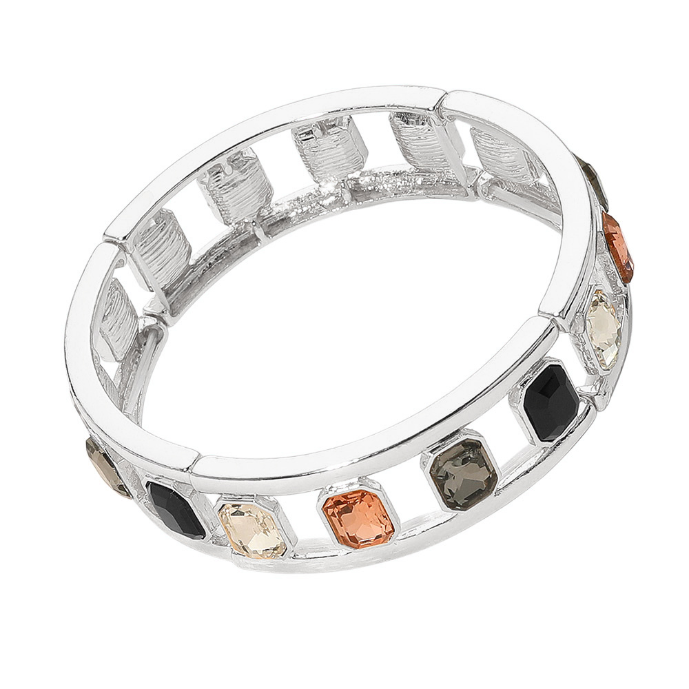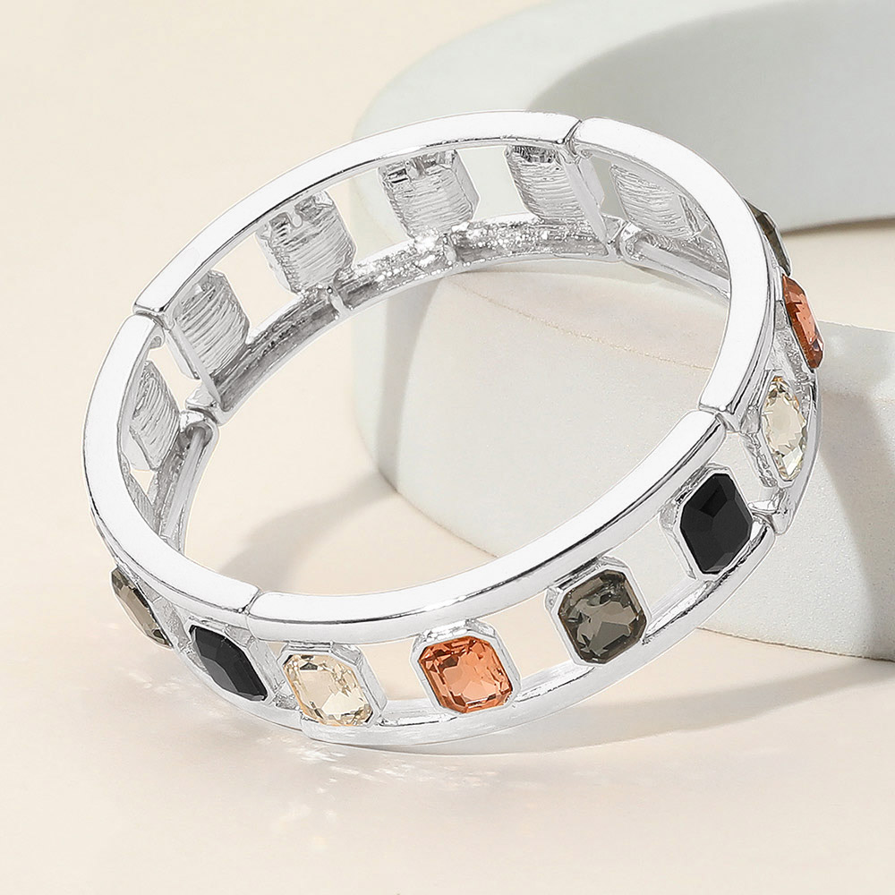 Emerald Cut Stone Embellished Open Frame Stretch Bracelet