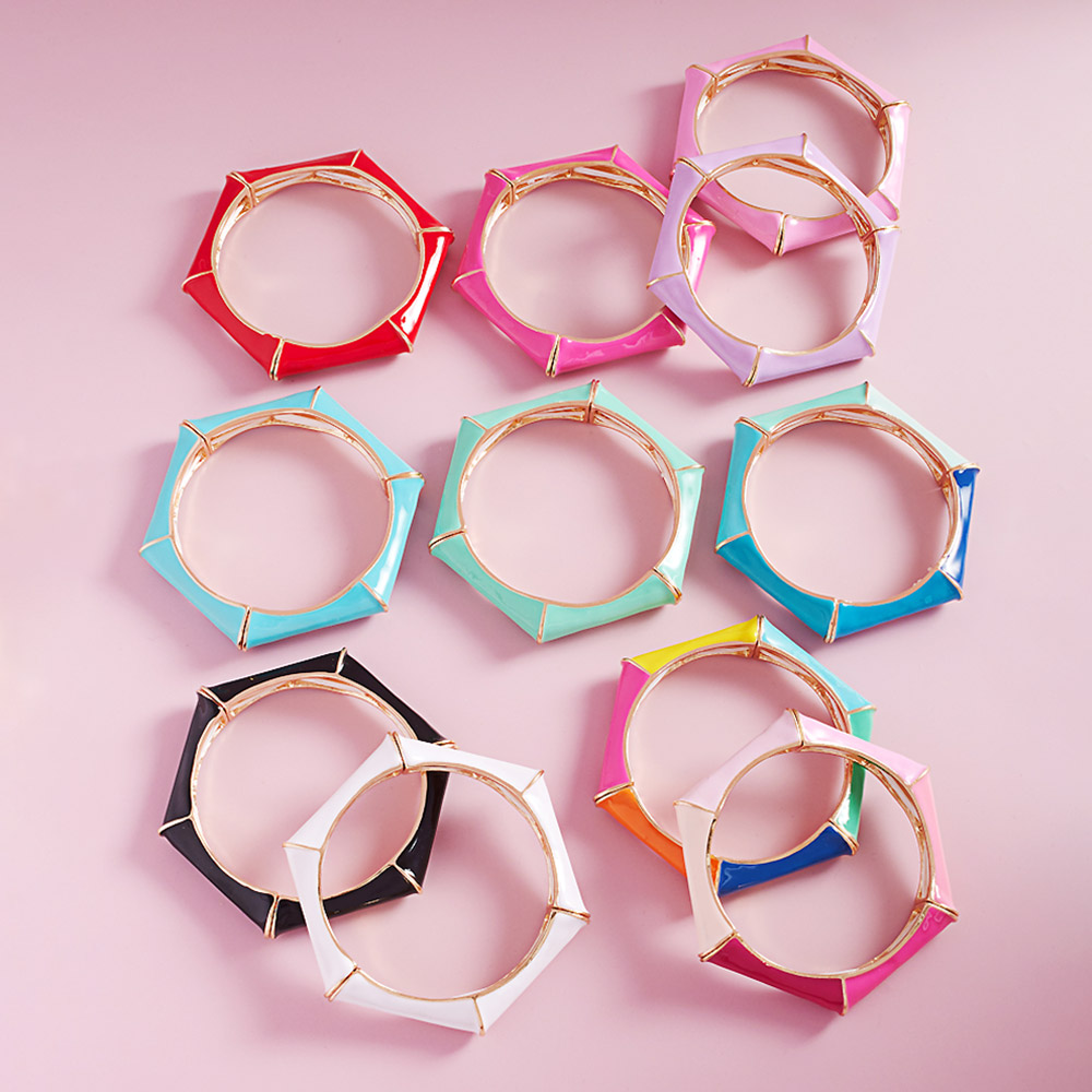 Enamel Hexagonal Stretch Bangle Bracelet