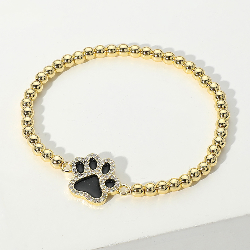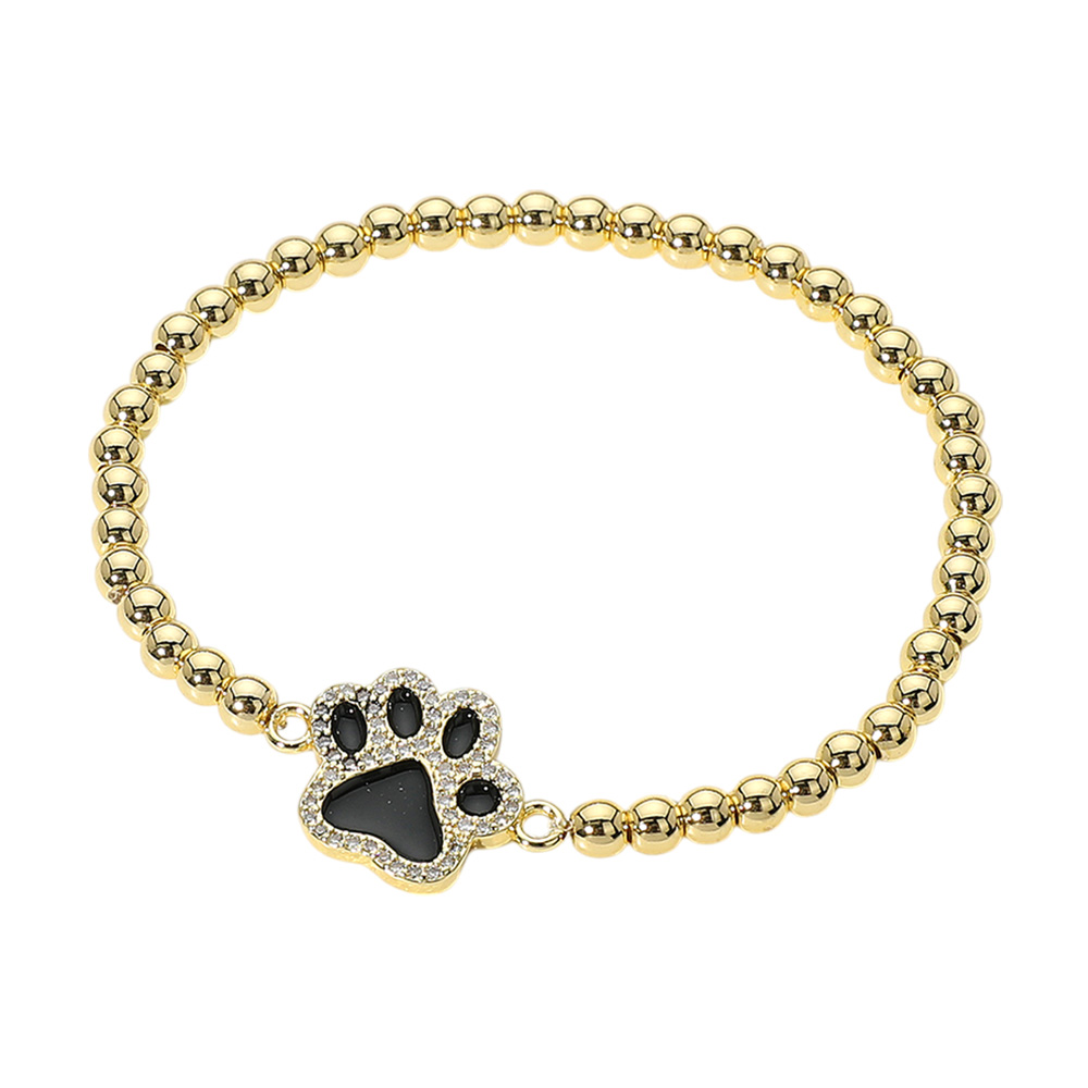 Enamel Paw Pointed Stainless Steel Ball Beaded Stretch Bracelet