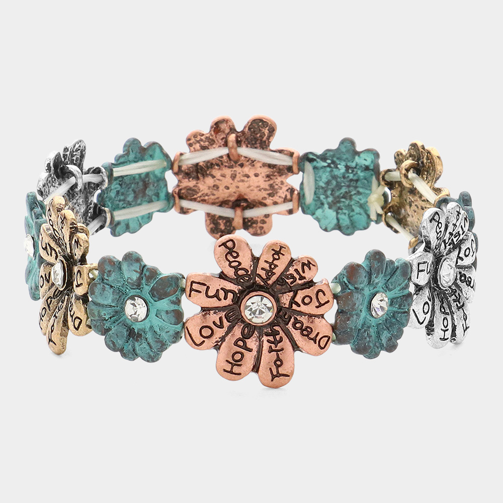 3PCS - Bold Rhinestone Embellished Flower Pendant Chunky Chain Layered Necklaces