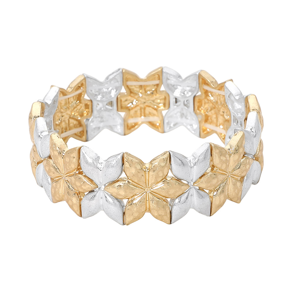 Geometric Floral Metal Beaded Stretch Statement Bracelet