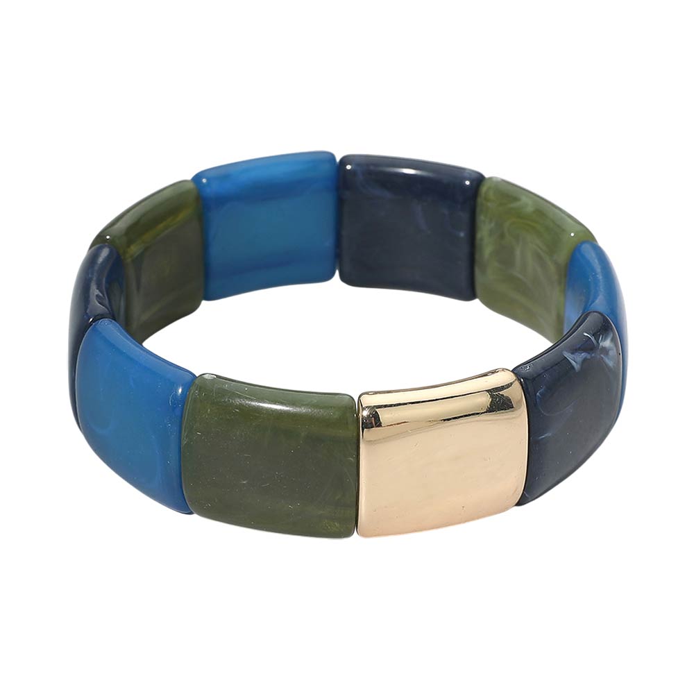 Details • Size : 0.75" H • Stretchable • Modern stretch bracelet featuring smooth geometric tile segments paired with a sleek polished accent for a bold yet balanced look. Designed for easy slip-on wear and comfortable all-day styling. Ideal for stacking or wearing solo, this bracelet adds contemporary appeal to everyday outfits, boutique jewelry selections, and gift-ready collections. • Lead and Nickel Compliant
