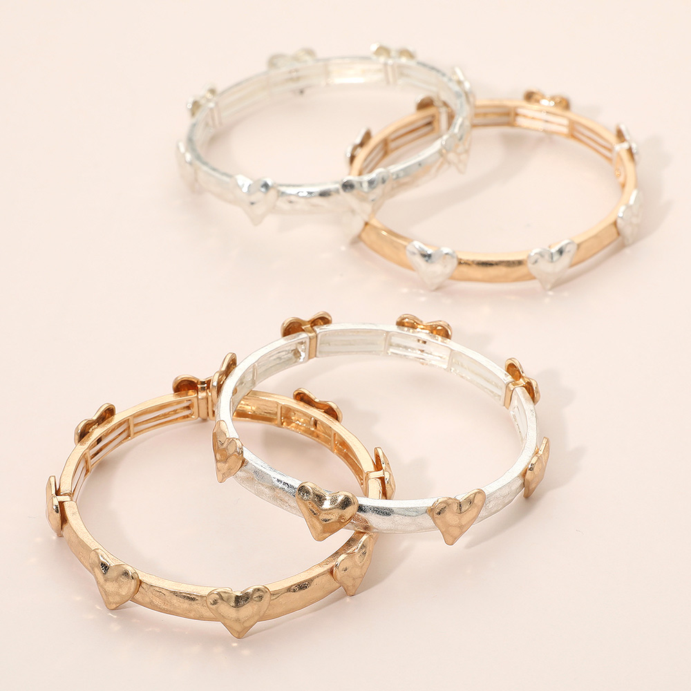 Hammered Brushed Metal Heart Accent Stretch Bracelet