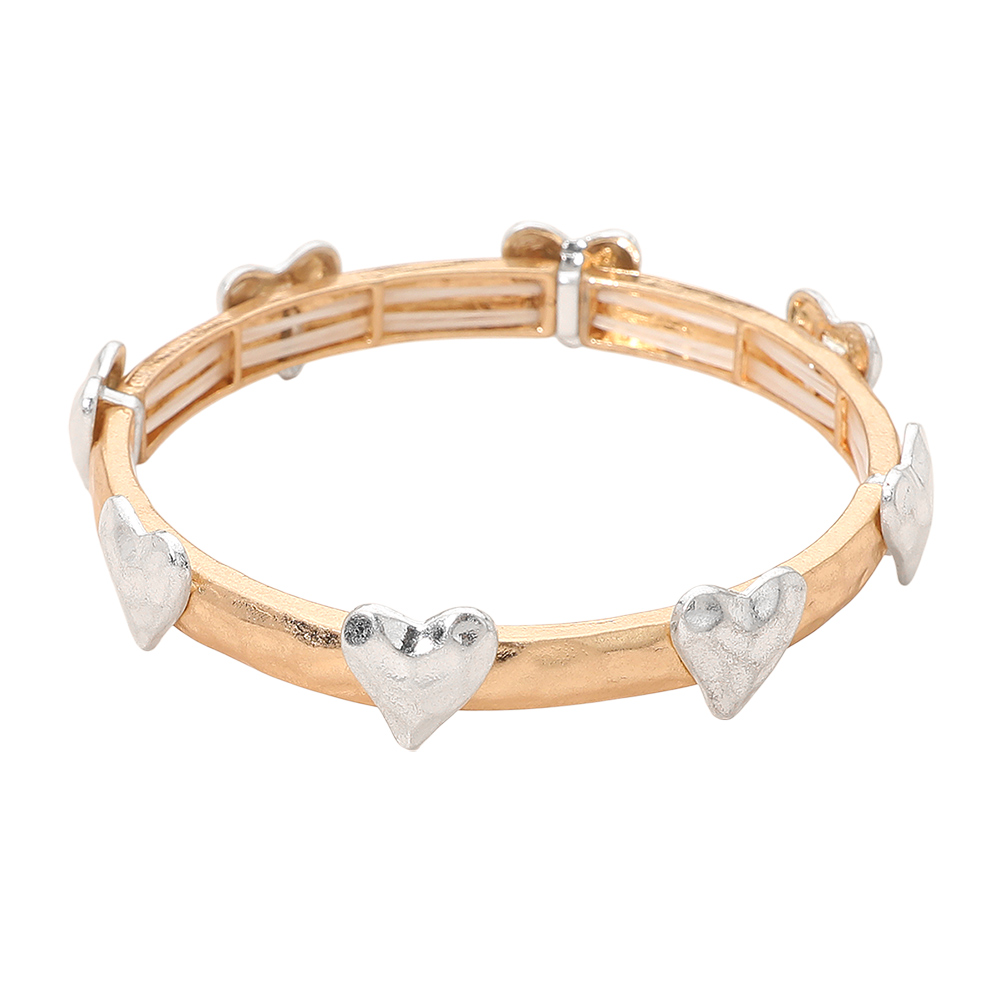 Hammered Brushed Metal Heart Accent Stretch Bracelet