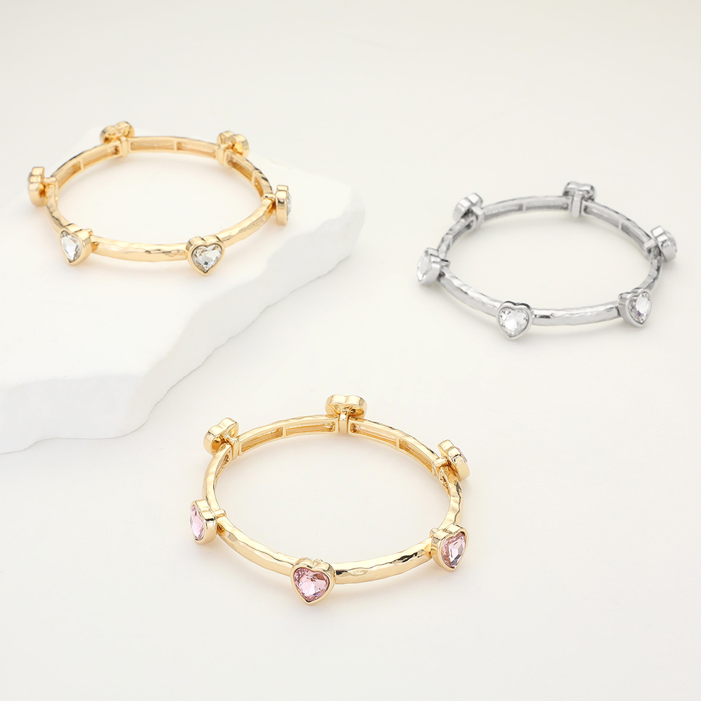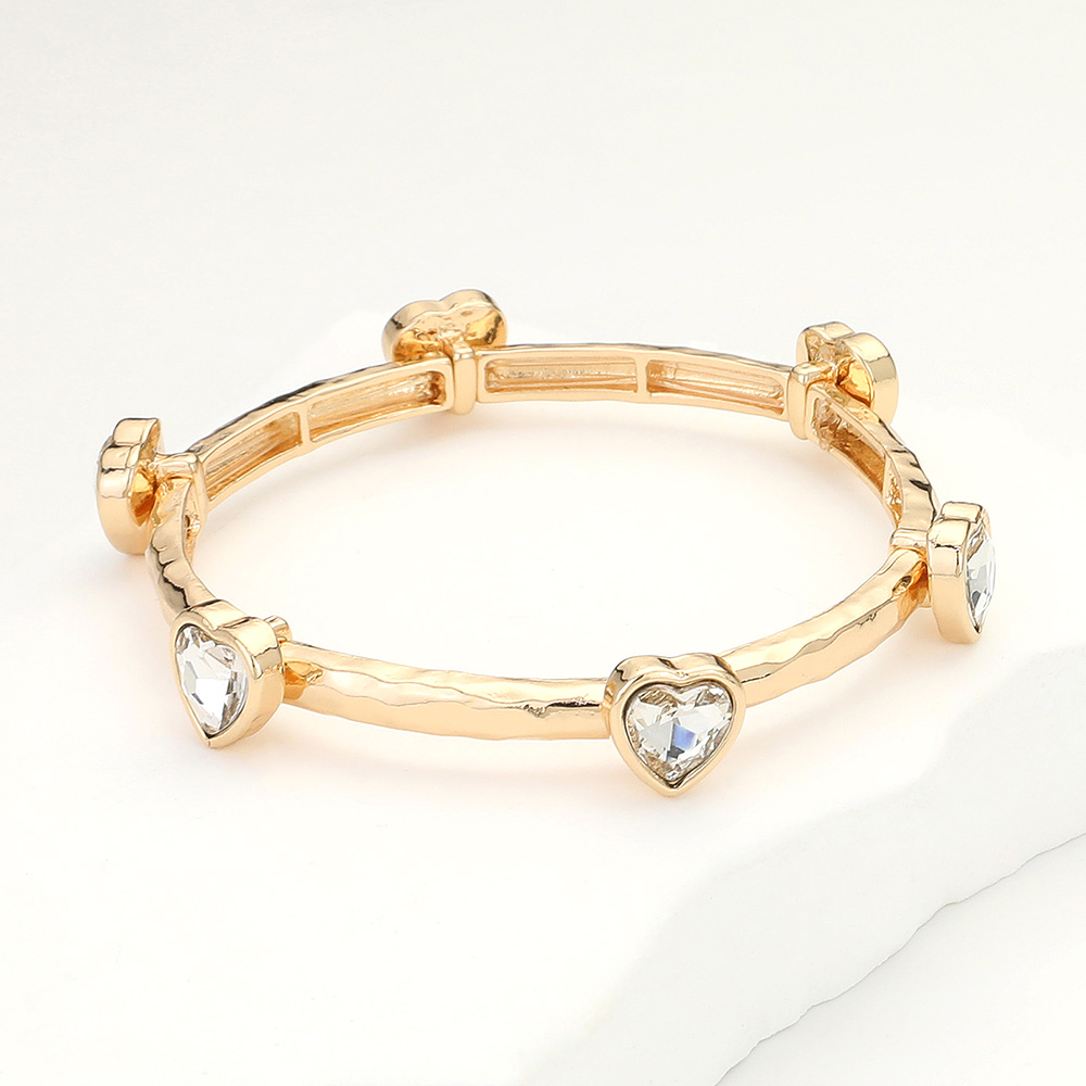 18k Gold Dipped Rhinestone Paved H Accent Double Layered Cinch Pull Tie Evening Bracelet