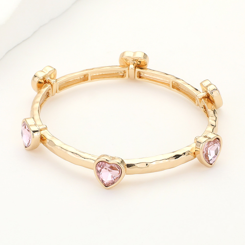 White Gold Dipped Metal Heart Charm Toggle Bracelet