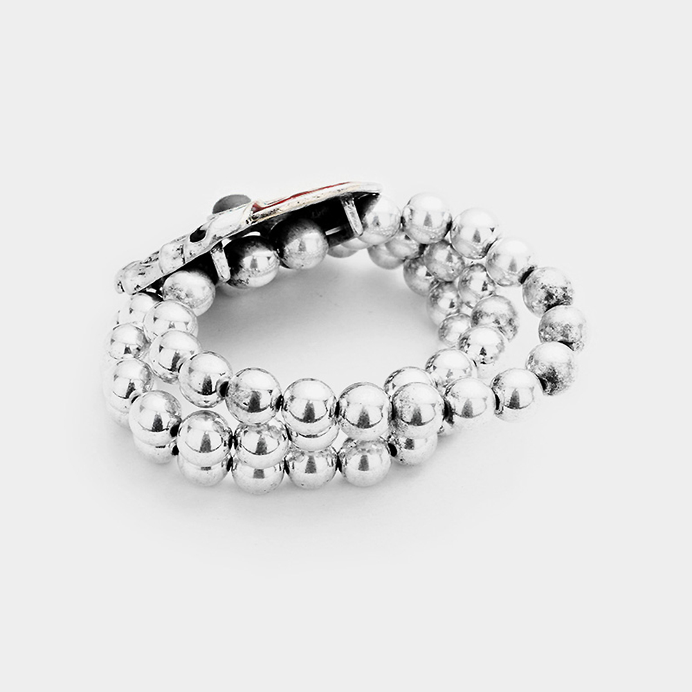Stone Accent Antique Metal Vintage Bow Stretch Bracelet