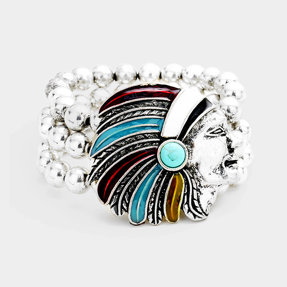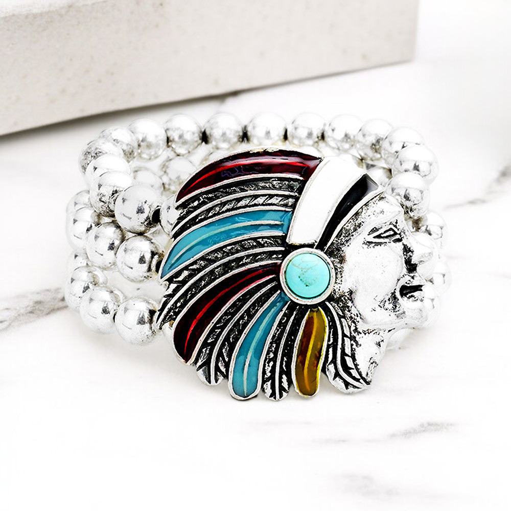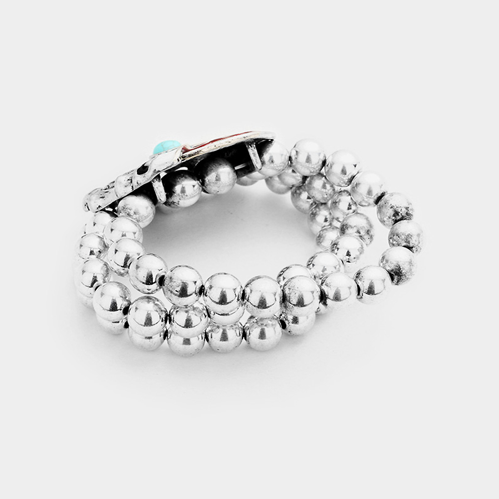 Two Row Western Square Turquoise Stone Beaded Stretch Bracelet