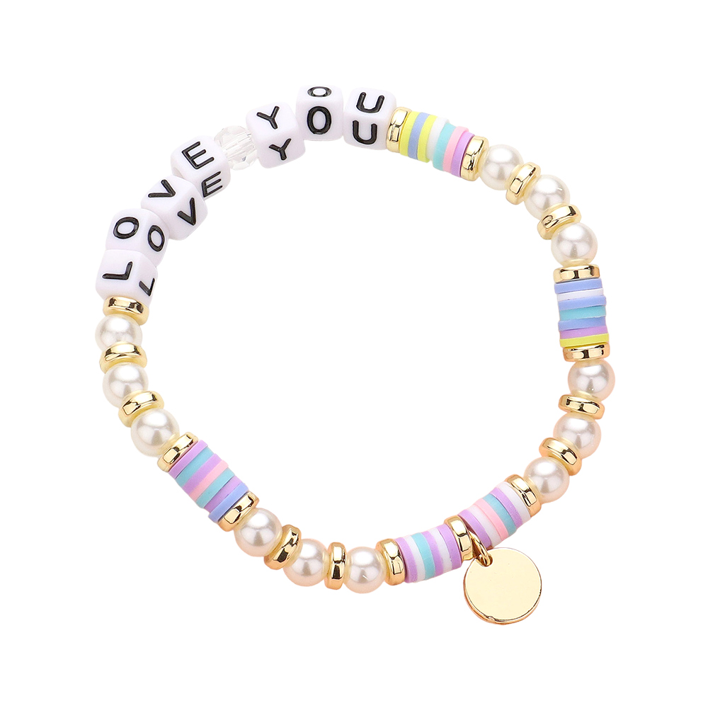 Details • Size : 0.25" H • Charm Size : 0.3" X 0.3" • Stretchable • Charming letter bead stretch bracelet spelling “LOVE YOU,” designed to add a heartfelt touch to everyday styling. A meaningful accessory ideal for gifting, layering, or boutique displays, offering playful charm, emotional connection, and versatile appeal for customers seeking expressive jewelry pieces. • Lead and Nickel Compliant