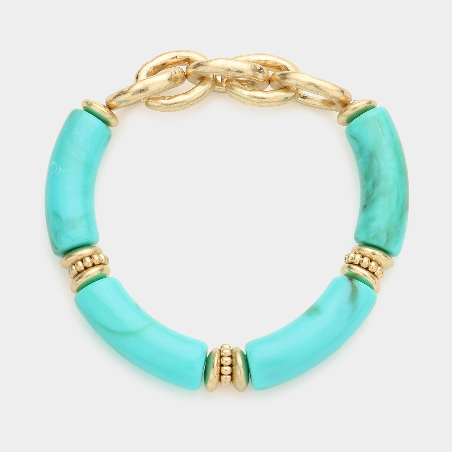 Metal Chain Accented Celluloid Acetate Stretch Bracelet