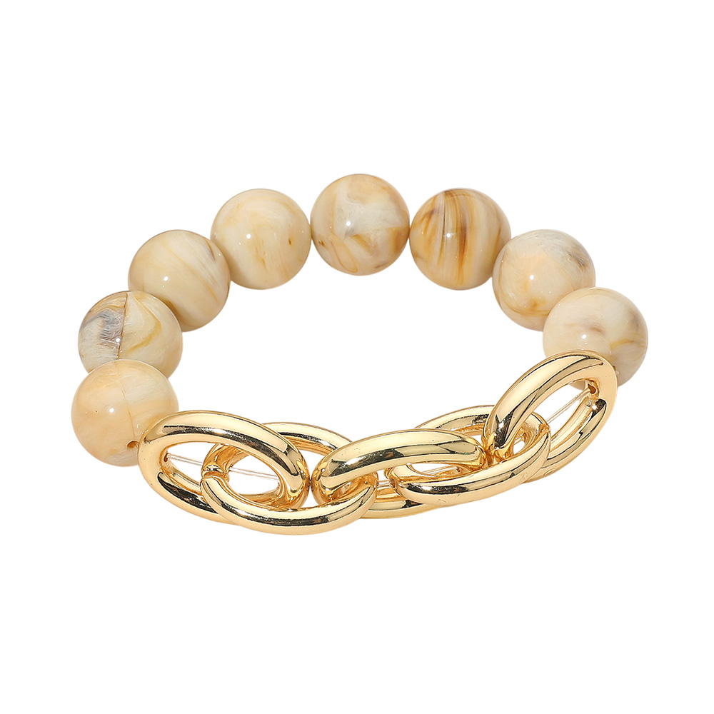 Metal Chain Link Accent Marbled Ball Beaded Stretch Bracelet