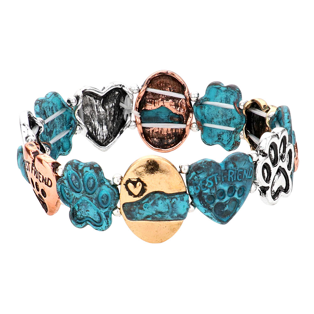 Metal Dog Paw BEST FRIEND Message Heart Stretch Bracelet