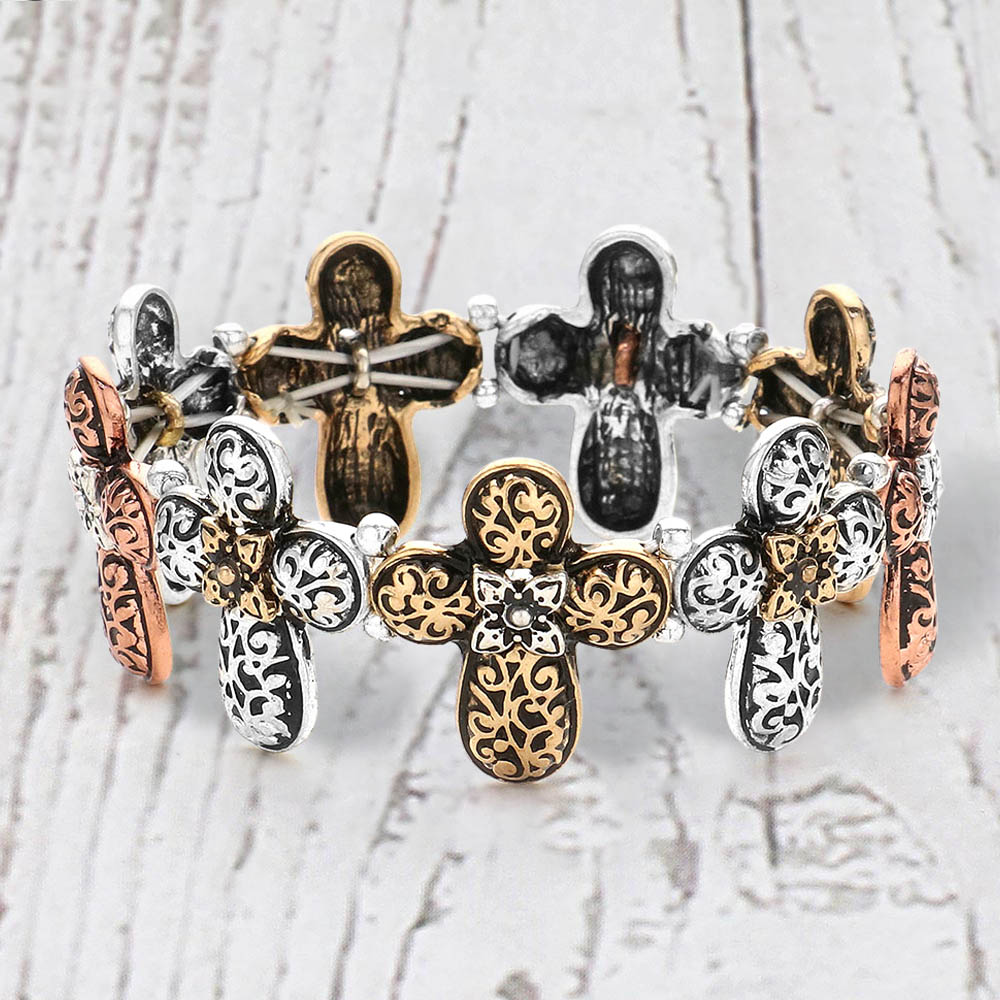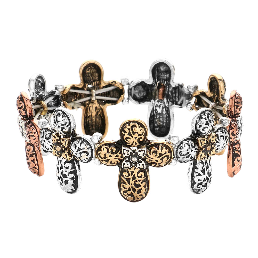 Details • Size : 0.9" H • Stretchable • Express timeless style with this filigree cross stretch bracelet. Its detailed design and intricate pattern create a bold yet graceful accessory that fits comfortably while adding a touch of faith-inspired elegance to any outfit. • Lead and Nickel Compliant