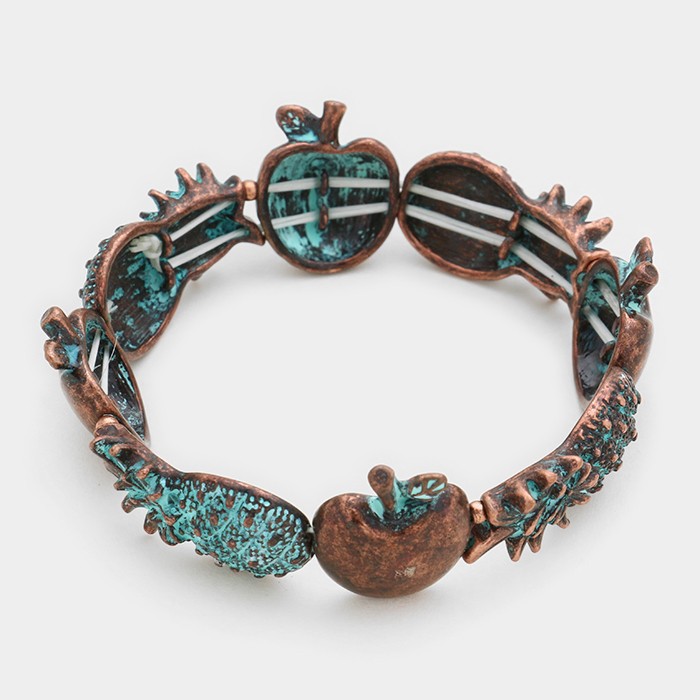 Western Cactus Embossed Plate Link Stretch Bracelet
