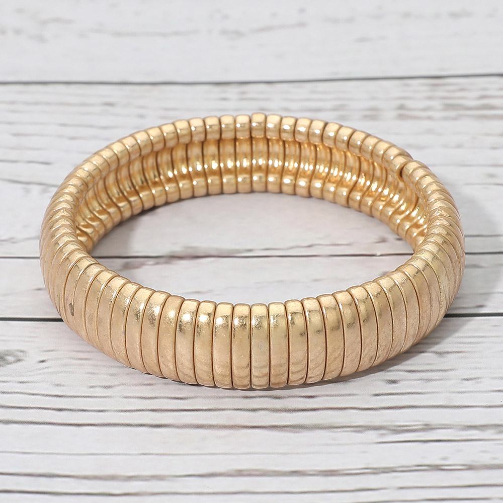 Details • Size : 0.6" H • Stretchable • This ribbed stretch bracelet features a sleek, sculpted silhouette that delivers bold texture and modern appeal. Designed for easy wear and versatile styling, it’s ideal for boutiques seeking statement accessories that elevate everyday outfits, layer effortlessly, and attract customers drawn to clean, fashion-forward jewelry designs. • Lead and Nickel Compliant