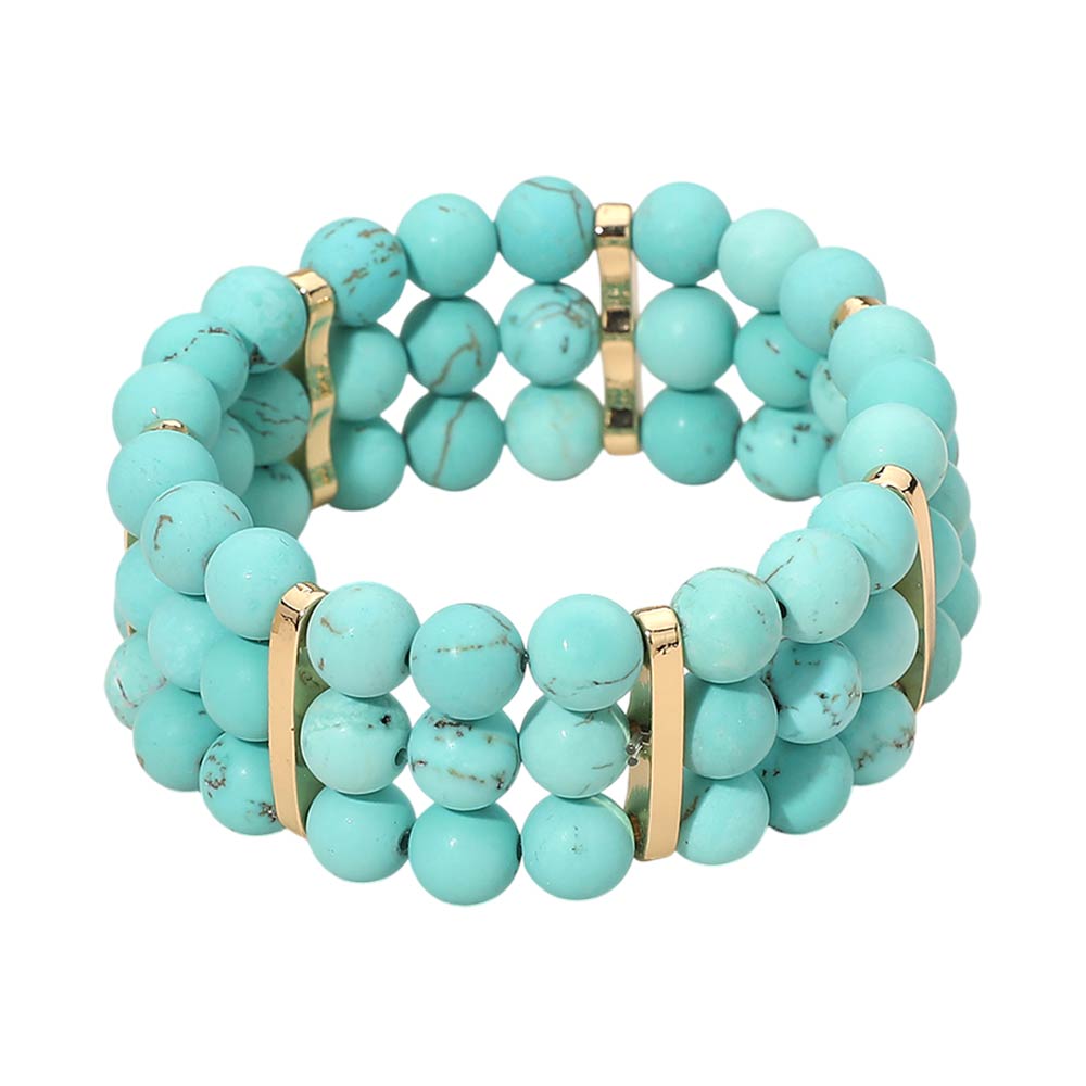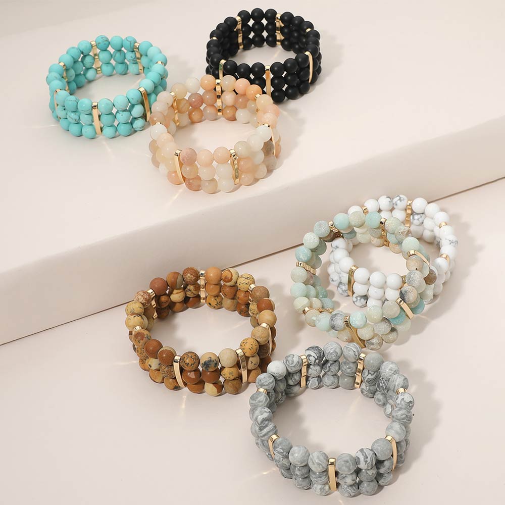 • Stylish multi row stretch bracelet designed with round beads and sleek spacer accents for a balanced, layered look. Easy slip-on fit offers comfort and flexibility for everyday wear. A versatile accessory ideal for casual outfits, boutique collections, stacking styles, and giftable fashion jewelry displays.