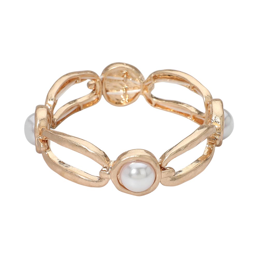 • Elegant stretch bracelet designed with sculpted link shapes and smooth pearl-style accents for a refined yet modern look. The flexible slip-on fit offers all-day comfort and easy wear. Perfect for stacking or wearing alone, this bracelet adds timeless charm to everyday outfits, boutique collections, or gift-ready assortments.